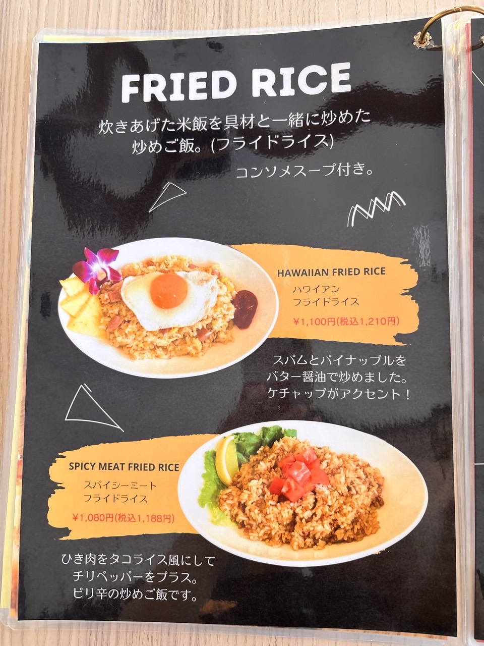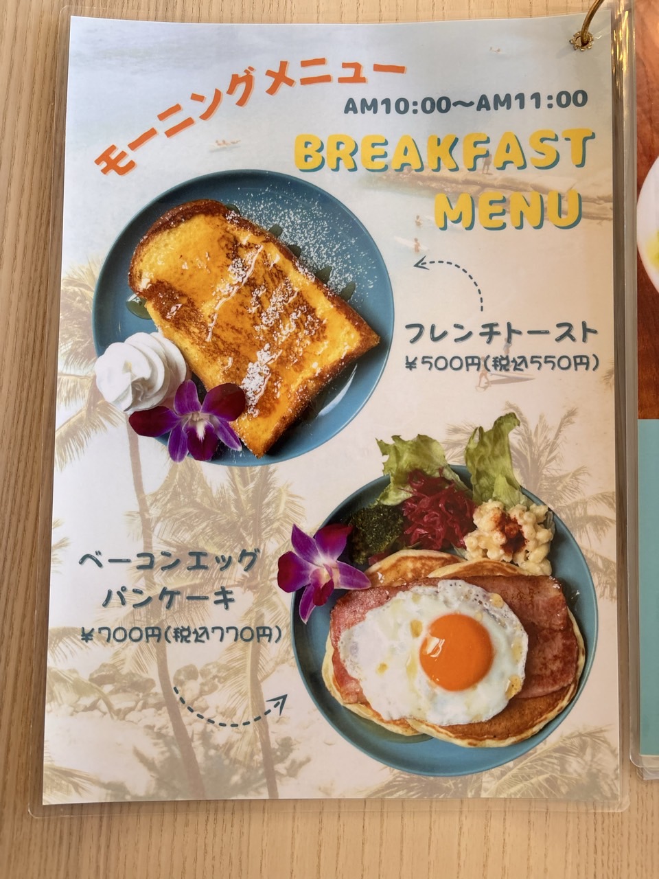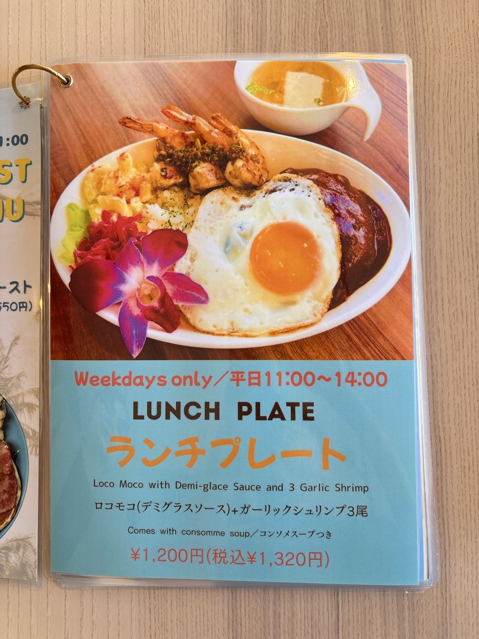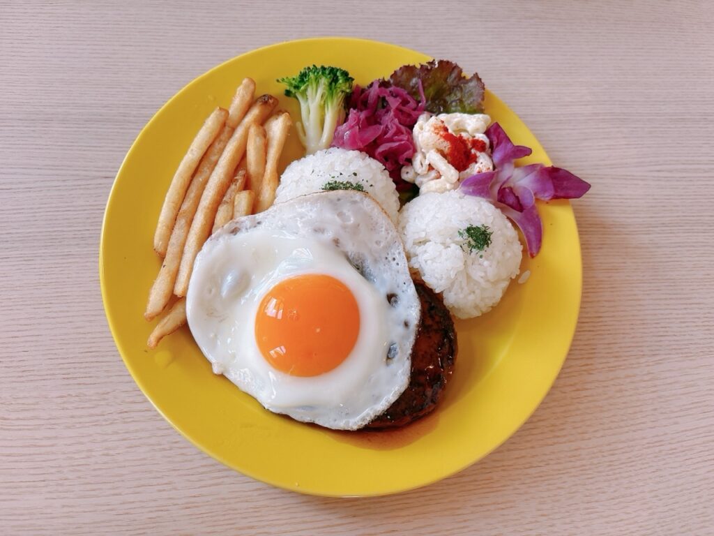 パンケーキ(種類いっぱい!)、フレンチトースト、ロコモコ、ガーリックシュリンプ、エッグベネディクト、サラダボール、カレー、フライドライス、スパムにぎり、ステーキ、ハンバーグ、ポケ丼、ピザ、フライドチキン、ポテト、アサイーボール、麻辣湯、豚バラ丼、コーヒーなどのドリンク類、そしてキッズプレートも!