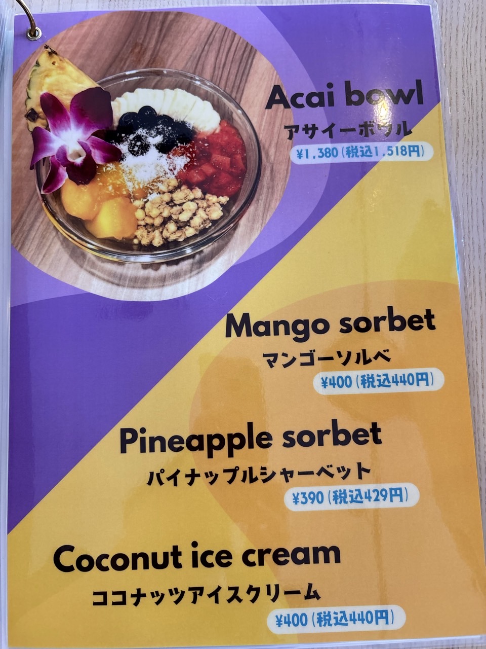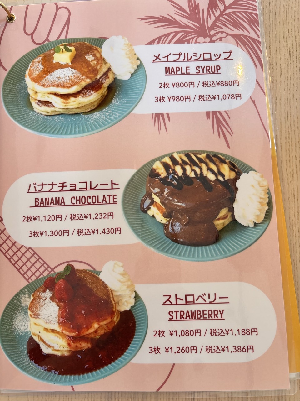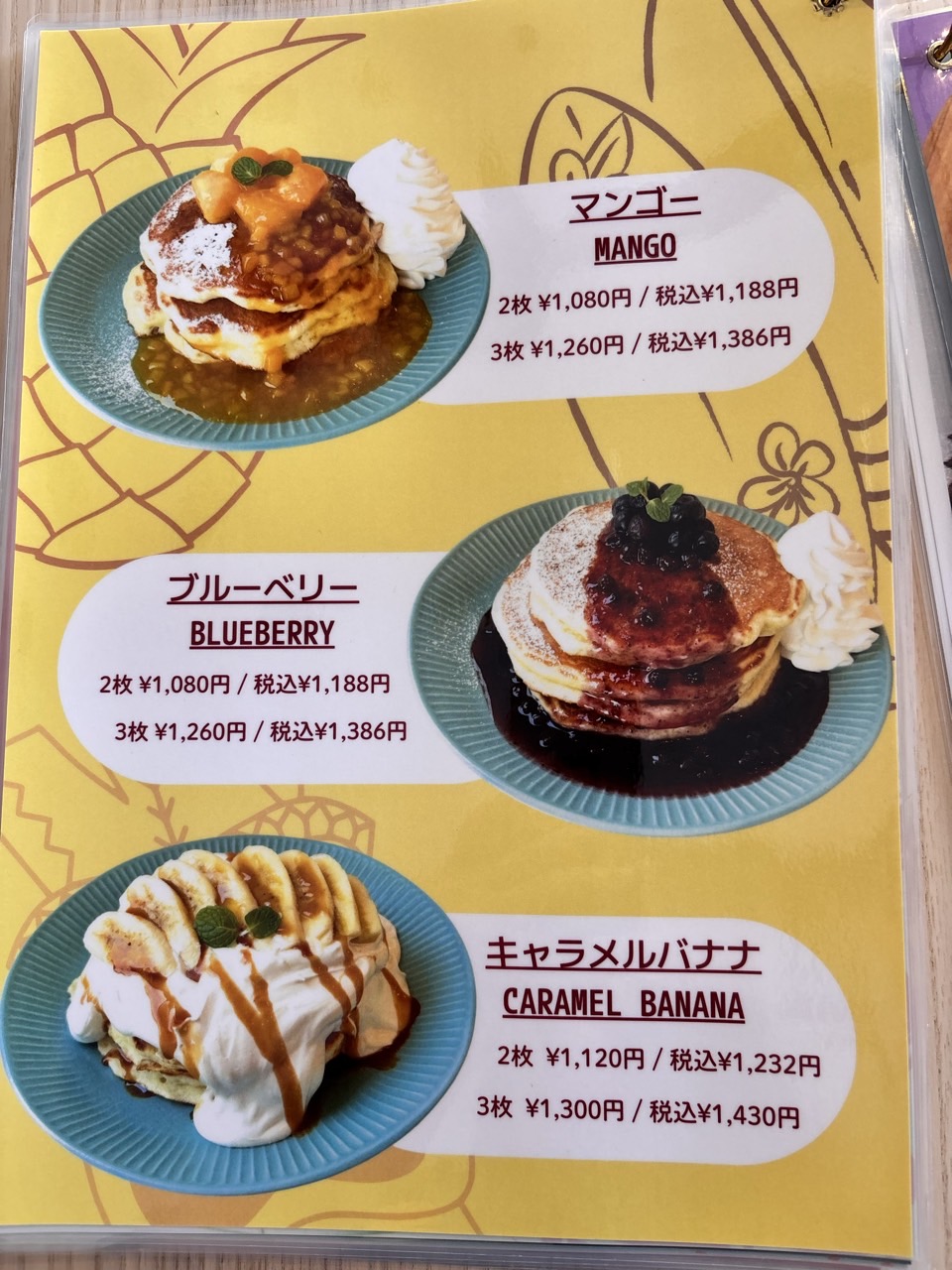 パンケーキ(種類いっぱい!)、フレンチトースト、ロコモコ、ガーリックシュリンプ、エッグベネディクト、サラダボール、カレー、フライドライス、スパムにぎり、ステーキ、ハンバーグ、ポケ丼、ピザ、フライドチキン、ポテト、アサイーボール、麻辣湯、豚バラ丼、コーヒーなどのドリンク類、そしてキッズプレートも!