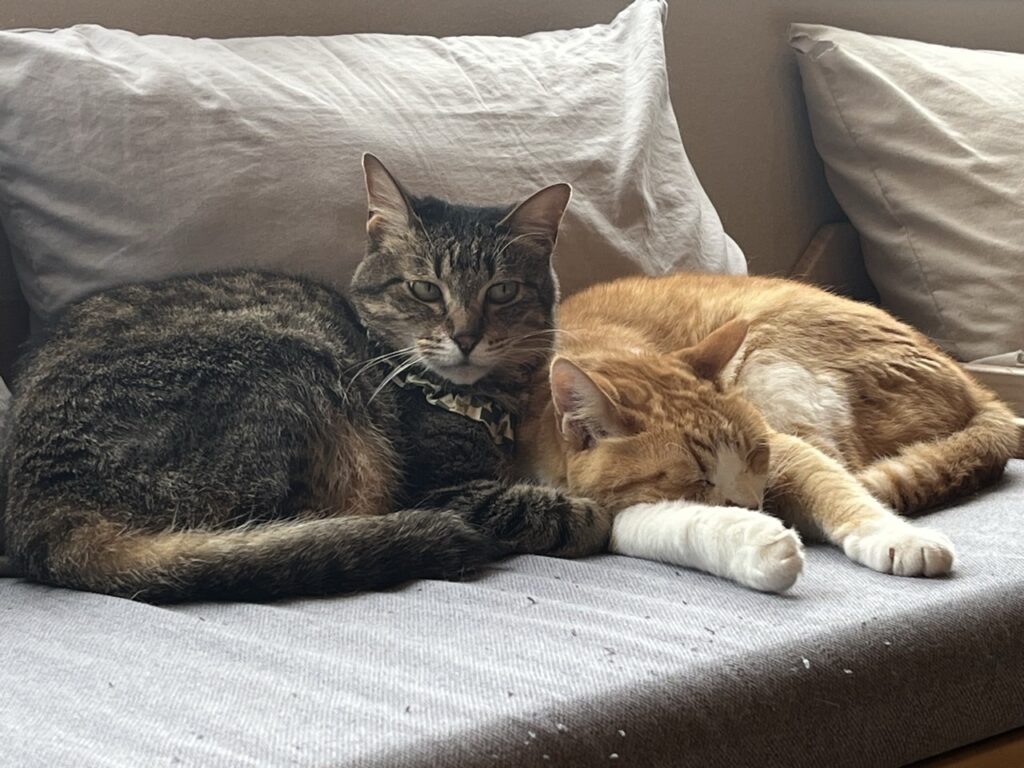 お次はにゃんず2匹が仲良く寄り添って寝ている写真です📸